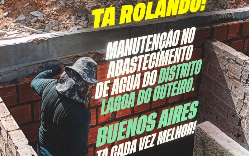 A Prefeitura de Buenos Aires segue cuidando do que é essencial para a população: água chegando com regularidade nas casas. A equipe técnica está em campo realizando uma intervenção importante no sistema de abastecimento do distrito de Lagoa do Outeiro, assegurando mais eficiência, segurança e tranquilidade para os moradores.