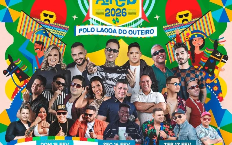 A festa também acontecerá no Polo Central, na Praça do Relógio, tradicional ponto de encontro dos foliões, e no Polo Lagoa do Outeiro, levando animação para a zona rural e distritos adjacentes.